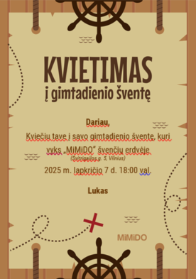 Dėmesio! Kvietimų pagal užsakymą nekuriame, kviečiame naudotis čia pateiktais nemokamais šablonais!